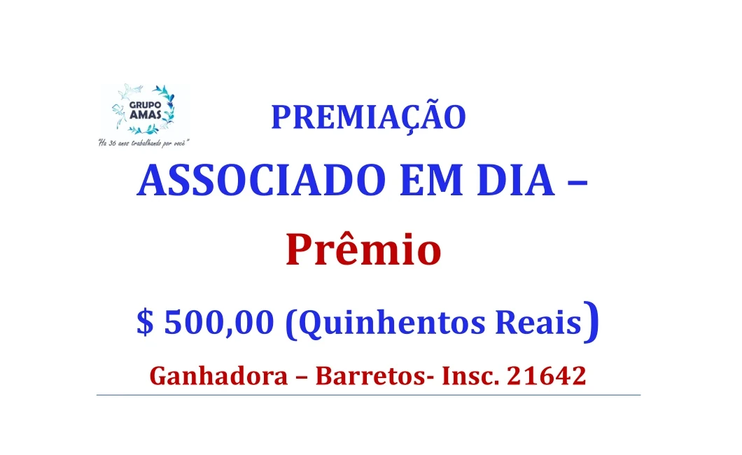 Ganhador Associado - Insc 6473 - Cidade de Barretos - SP
